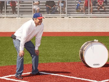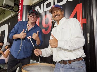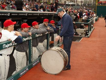 Adams first brought a bass drum – one he bought at a garage sale after having played the bass drum in high school band – to Cleveland Stadium in 1973. There was already a fan tradition of banging on seats during exciting moments, and he wanted to add to the clamor. He immediately caught the attention of other fans as well as the players, and he was interviewed for a local newspaper that same day. Adams continued bringing his drum as he attended almost every home game for five decades, only stopping when the COVID-19 pandemic and, later, his own health issues made it impossible for him to attend. He became a Cleveland institution, drumming as the players took the field and in other key moments throughout the game. The team honored him by twice inviting him to take place in the ceremonial first pitch – once, he hit the ball with his drum after it was pitched by a former player. The team gave out Adams bobblehead dolls in 2006, and he was inducted into their Hall of Fame.